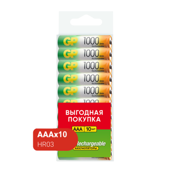 Аккумулятор GP 100AAAHC AAA NiMH 1000mAh (10шт) 100AAAHC-CRB10 .