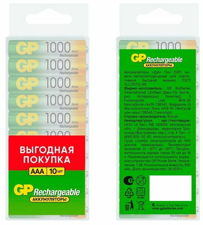 Ниже Вы можете прочитать отзывы на Аккумулятор GP AAA 1000mAh Ni-Mh BL10 GP100AAAHC-CRB10, 10шт., ознакомится с подробными характеристиками, посмотреть интересные обзоры и фотографии на Аккумулятор GP AAA 1000mAh Ni-Mh BL10 GP100AAAHC-CRB10, 10шт..