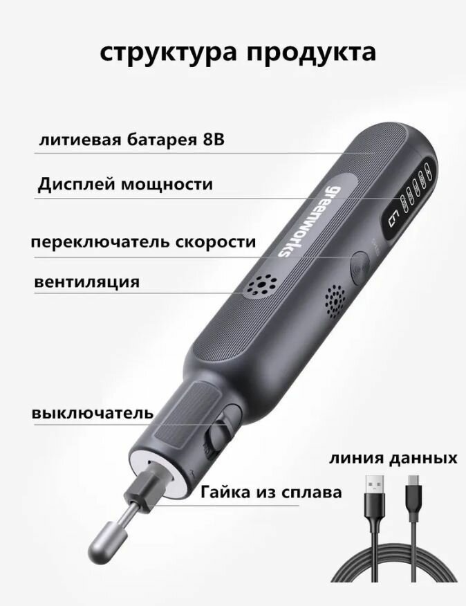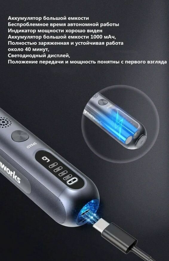 Высокотехнологичный беспроводный гравер Greenworks с набором 52 шт. 6 режимами 5-30 тыс. об./мин. - 80 Вт - 8 В - 1000мАч