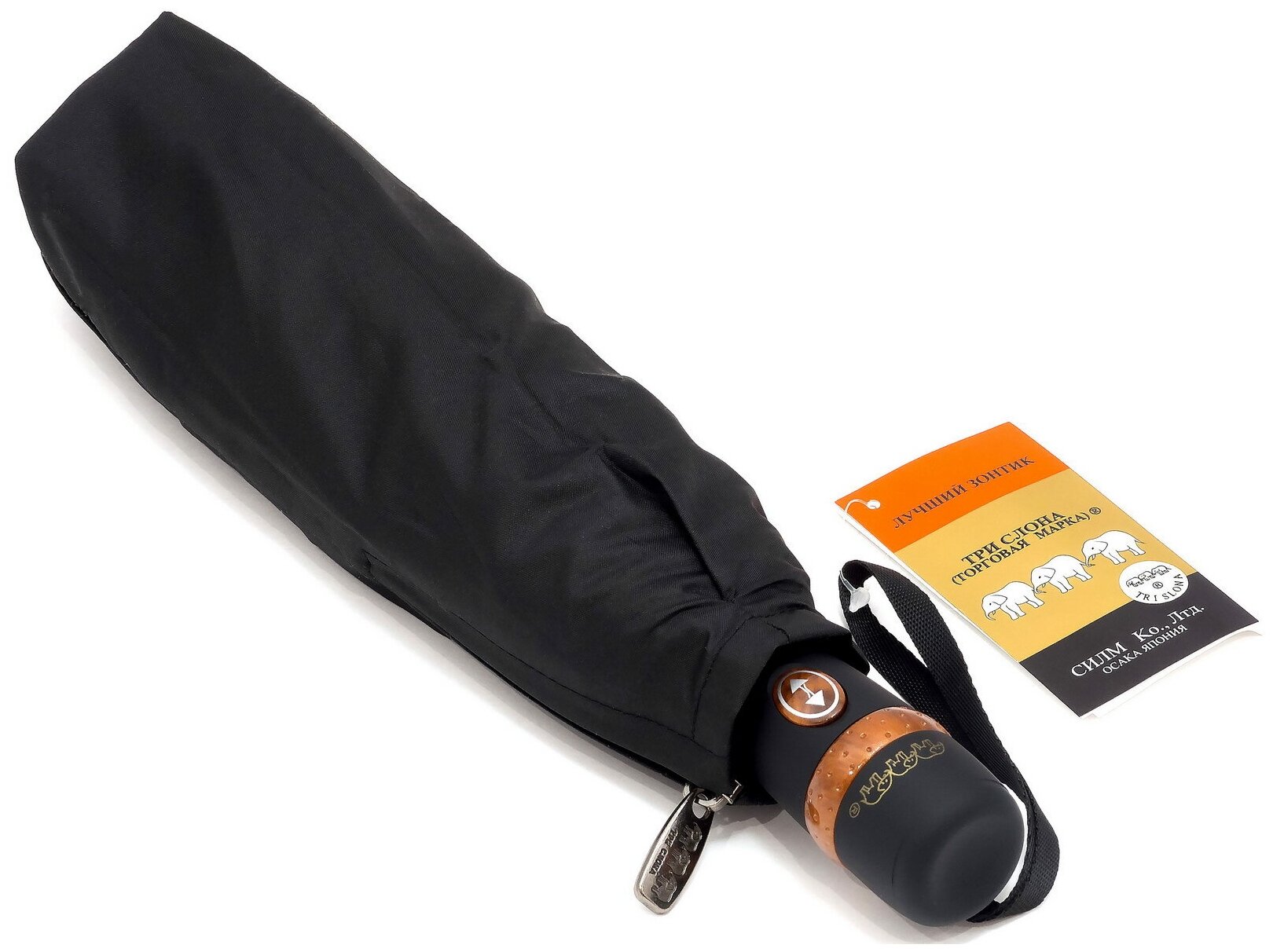 Зонт Три слона, автомат, 3 сложения, купол 116 см., 10 спиц, система «антиветер», черный интересное: