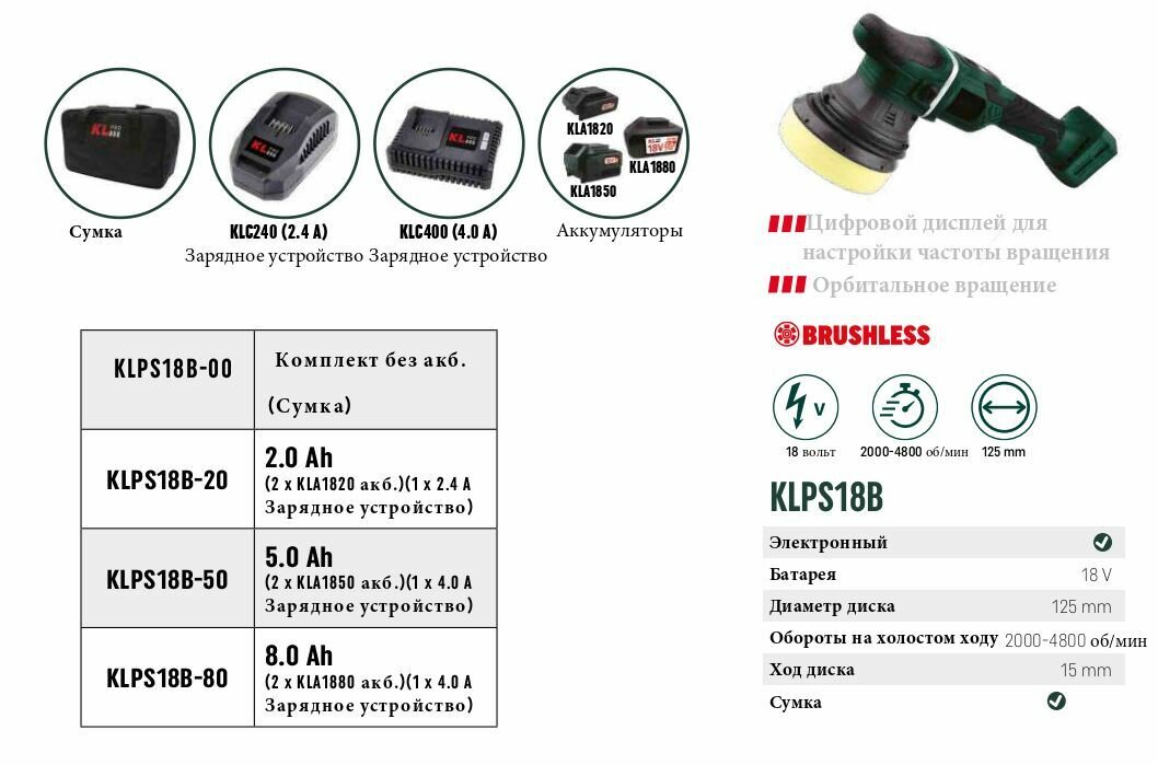 Полировальная машина бесщеточная 125 мм KLpro KLPS18B-00 (18 В) без ЗУ и АКБ интересное: