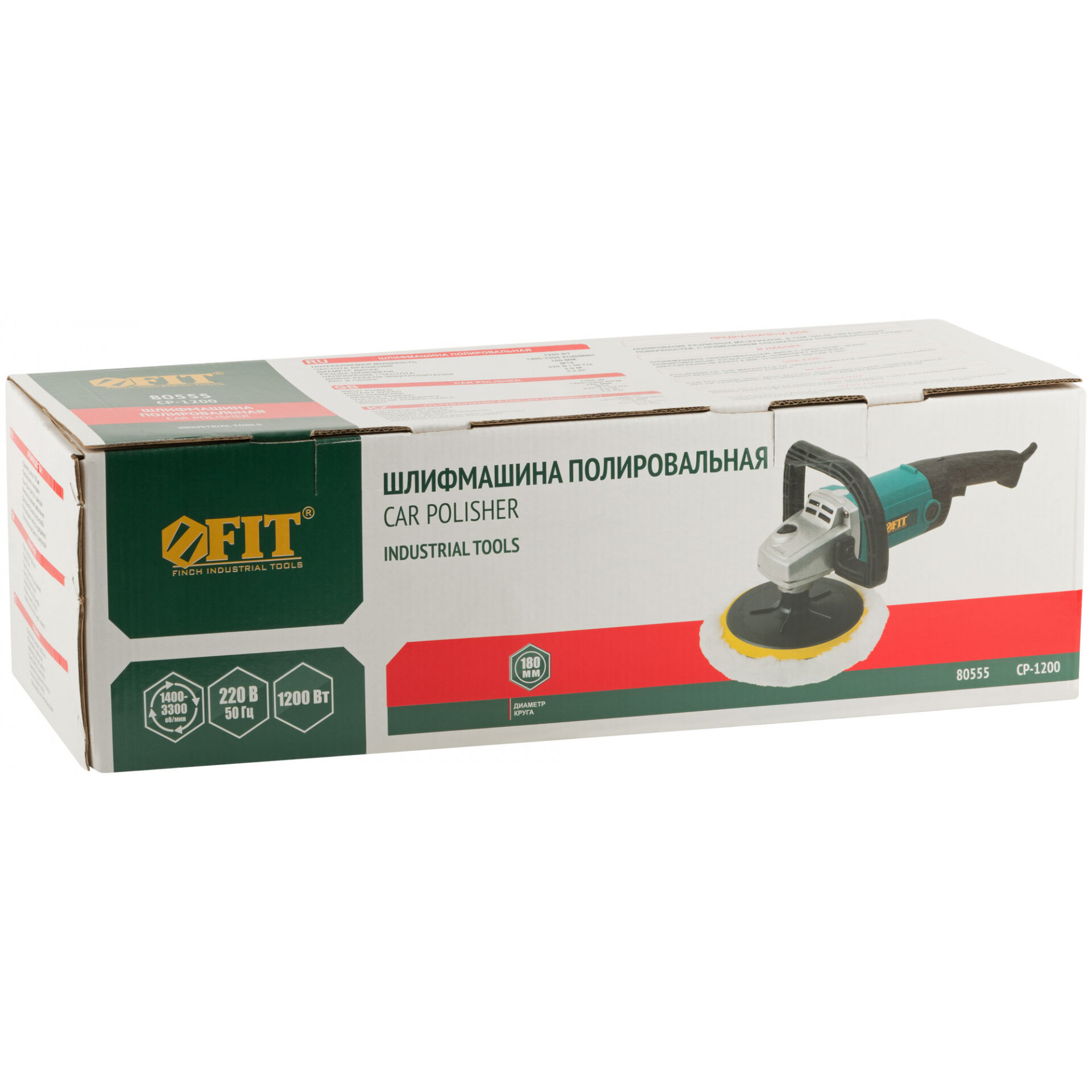 Шлифмашина полировальная 1200 Вт; 1400-3300 об/мин; 180 мм; коробка, FIT 80555 (1 шт.) интересное: