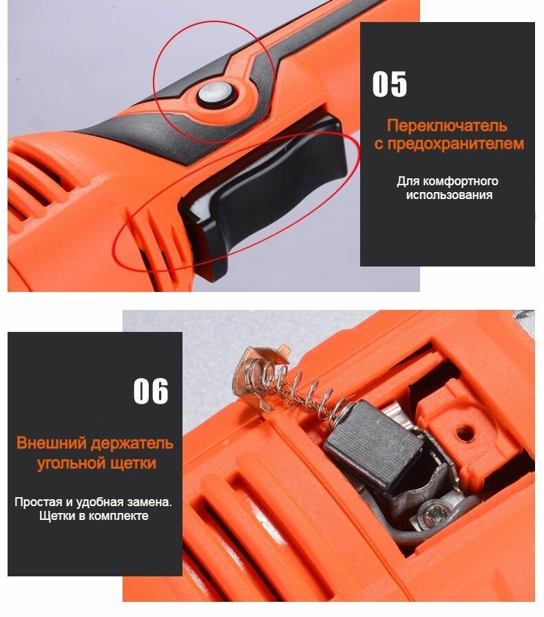 | Особенности конструкции | антивибрационная система, блокировка кнопки включения, дополнительная рукоятка, фиксация шпинделя |