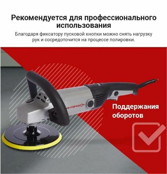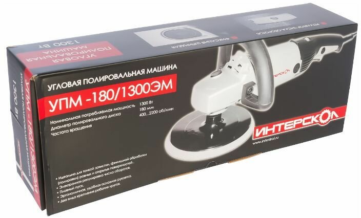Полировальная машина угловая ИНТЕРСКОЛ УПМ-180/1300ЭМ профессиональная (1300Вт, круг 180мм, 400-2200об/мин, плавный пуск, М14, 3,1кг, коробка)) интересное: