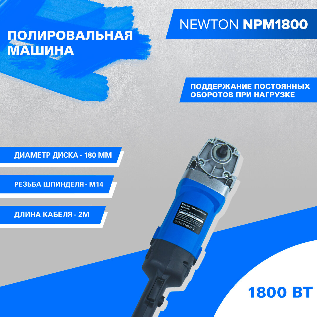 Купить Полировальная машина Newton NPM1800 (1800Вт, 180мм, 3000 об/мин, липучка, шпиндель М14, посад. диам. 22.2)