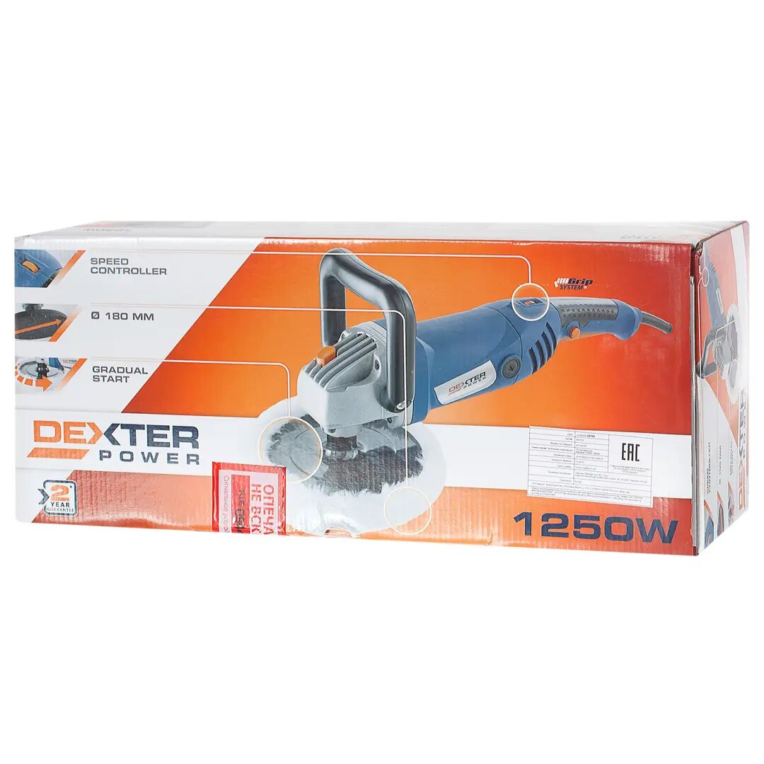 Полировальная машина Dexter A7188-DP, 1250 Вт, 180 мм интересное: