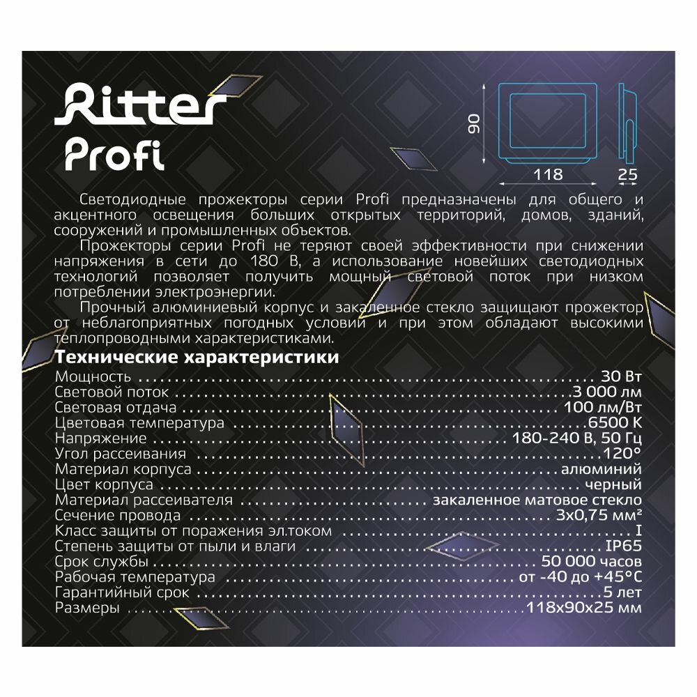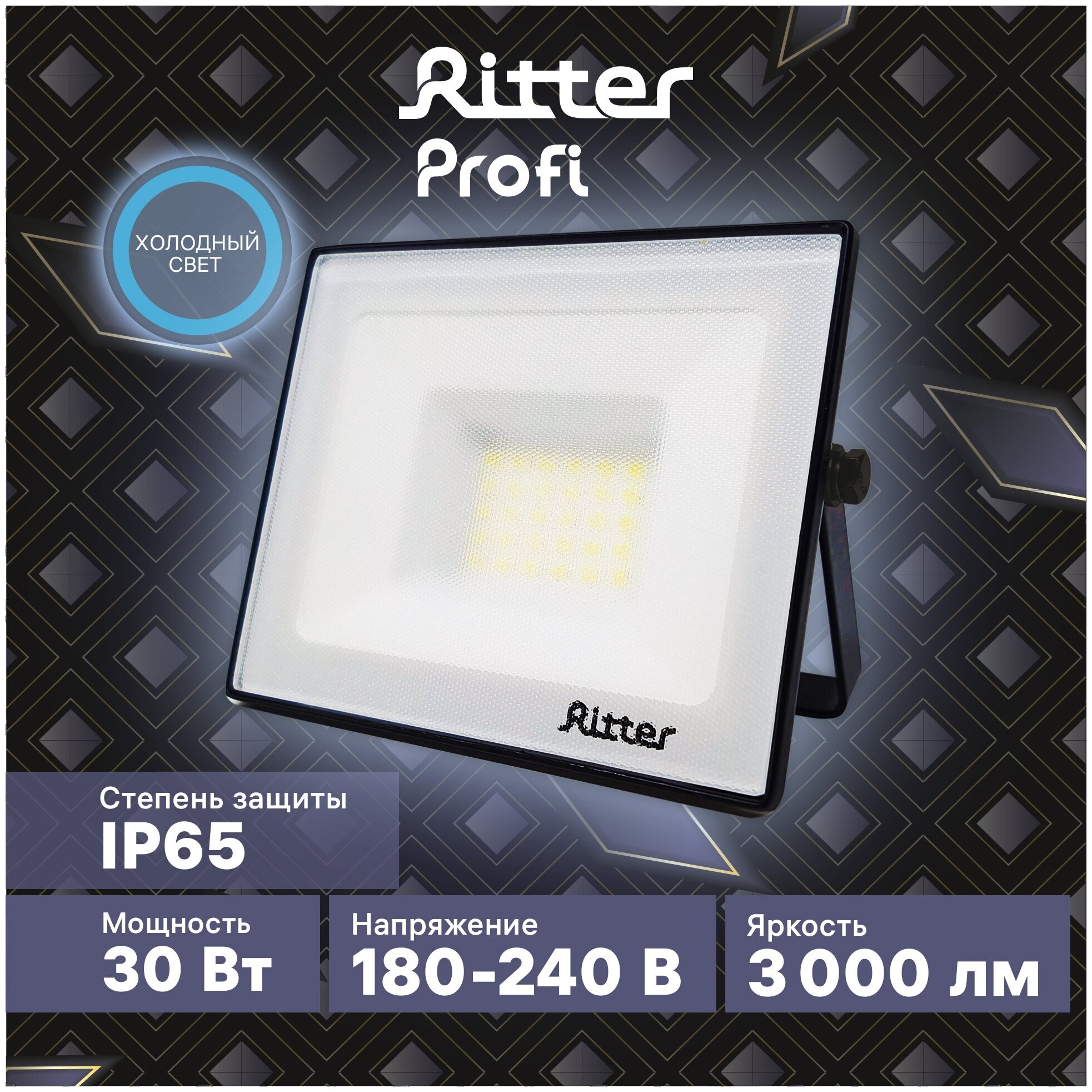 Ritter Прожектор светодиодный серия Profi 230В 30 Вт 6500К 3000Лм IP65 черный 53407 9 .