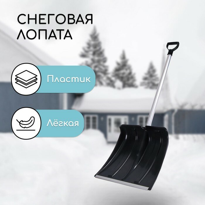 Лопата пластиковая, ковш 380 ? 380 мм, морозостойкая, с алюминиевой планкой, алюминиевый черенок, «Снежинка», микс