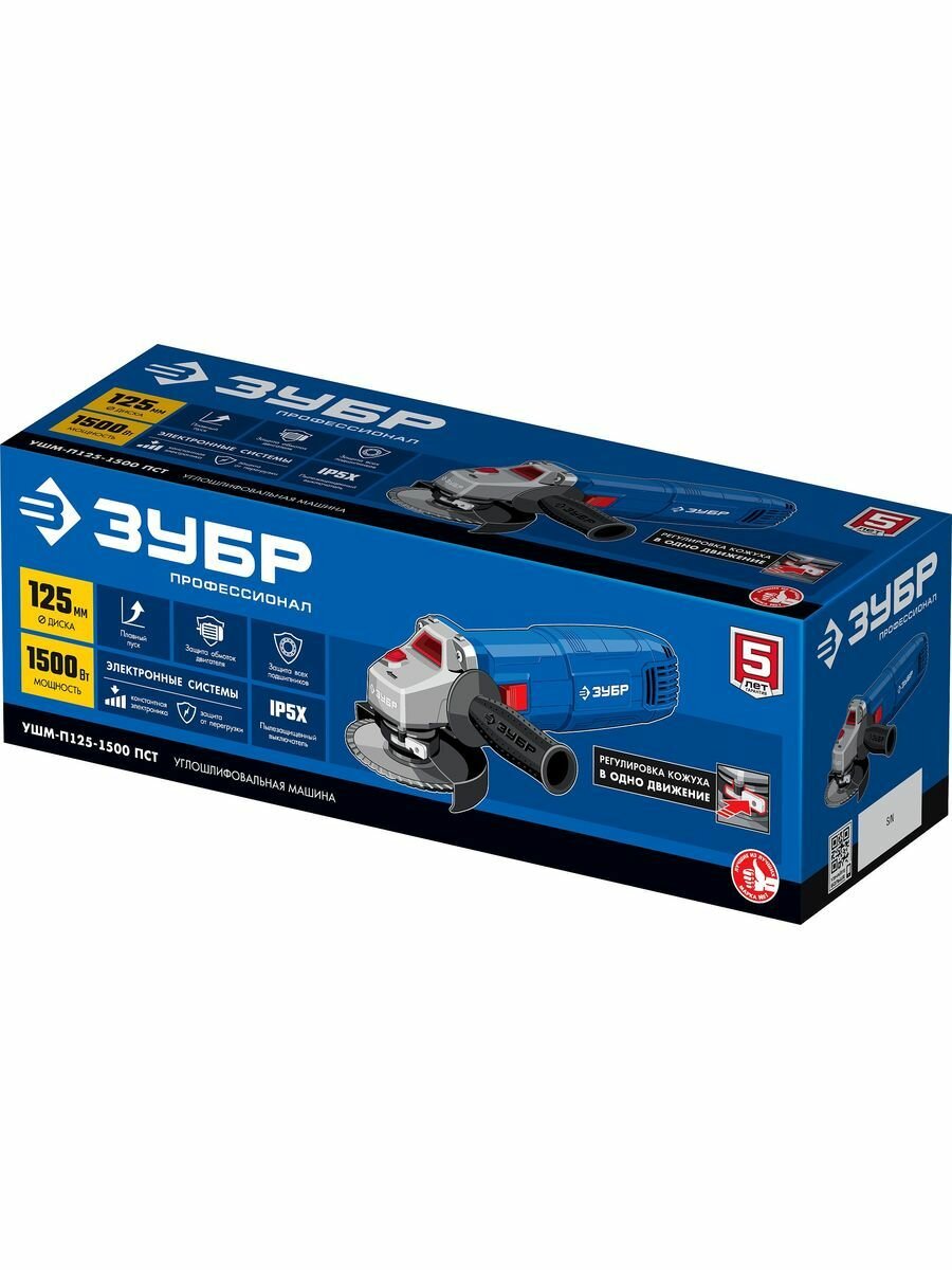 УШМ ЗУБР УШМ-П125-1500 ЭПСТ, 125 мм синий