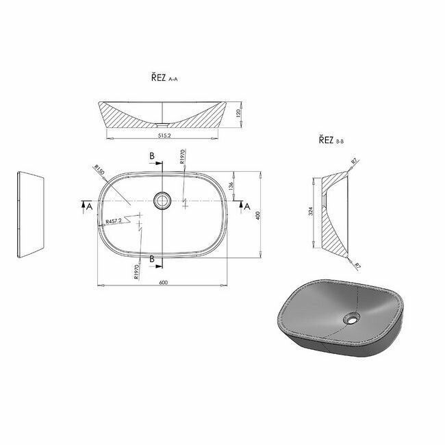 Ceramic 60х40х12см, накладная раковина, санфарфор, арт. XJX01160001, Ravak