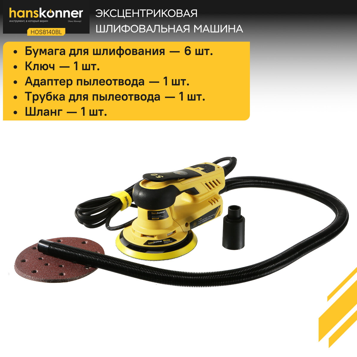 Эксцентриковая шлифовальная машина Hanskonner HOS8140BL интересное: