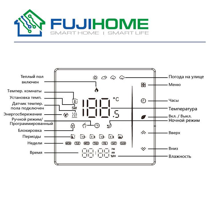 Терморегулятор/термостат для теплого пола и обогревателя FUJIHOME FH-600B интересное: