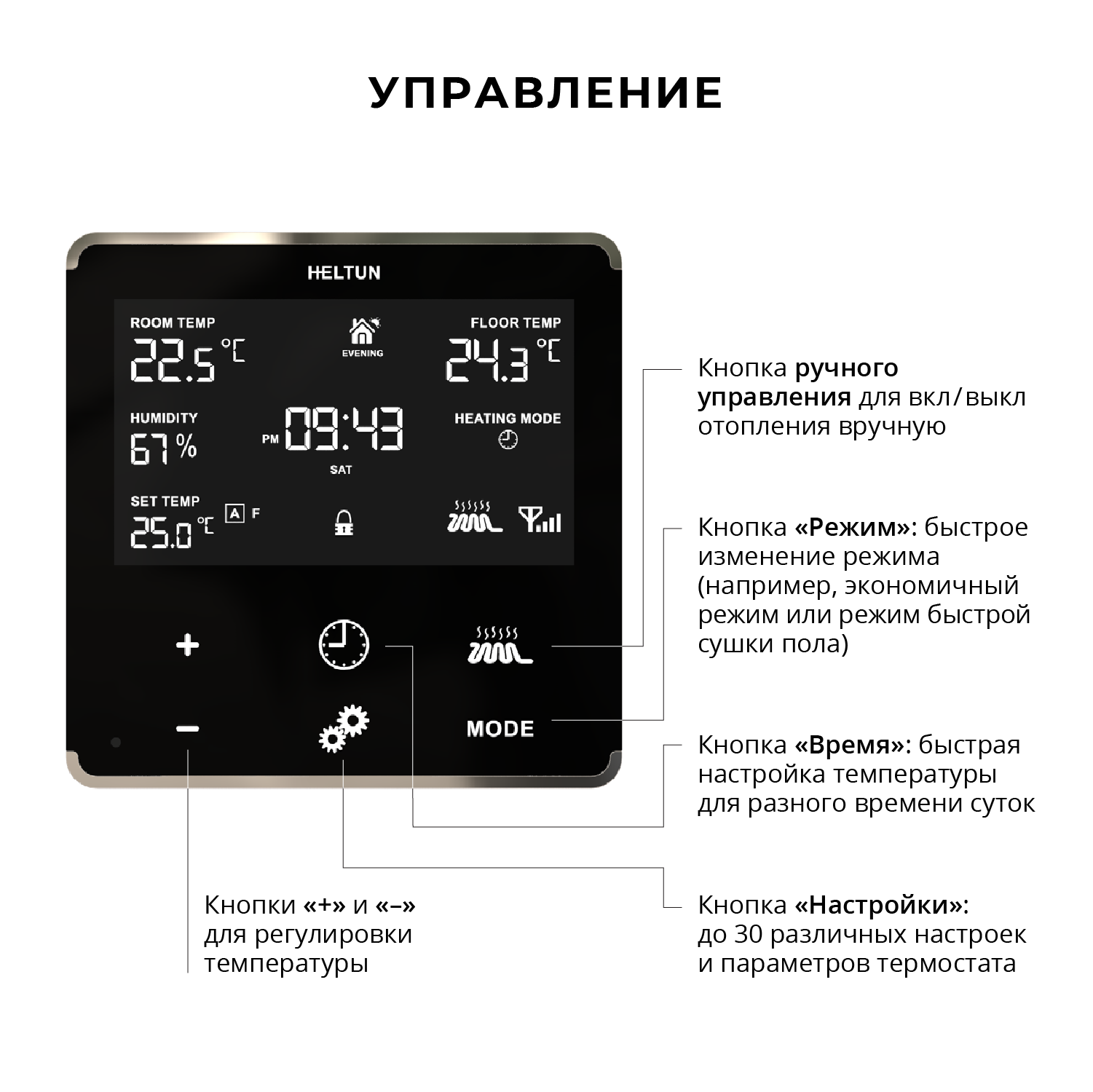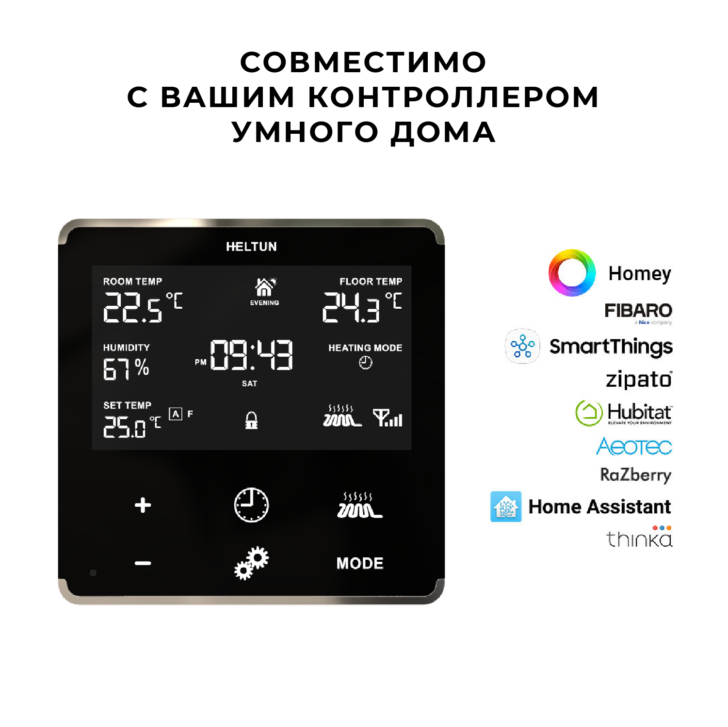 Термостат теплого пола Heltun (Чёрная панель, Серебристая рамка). интересное: