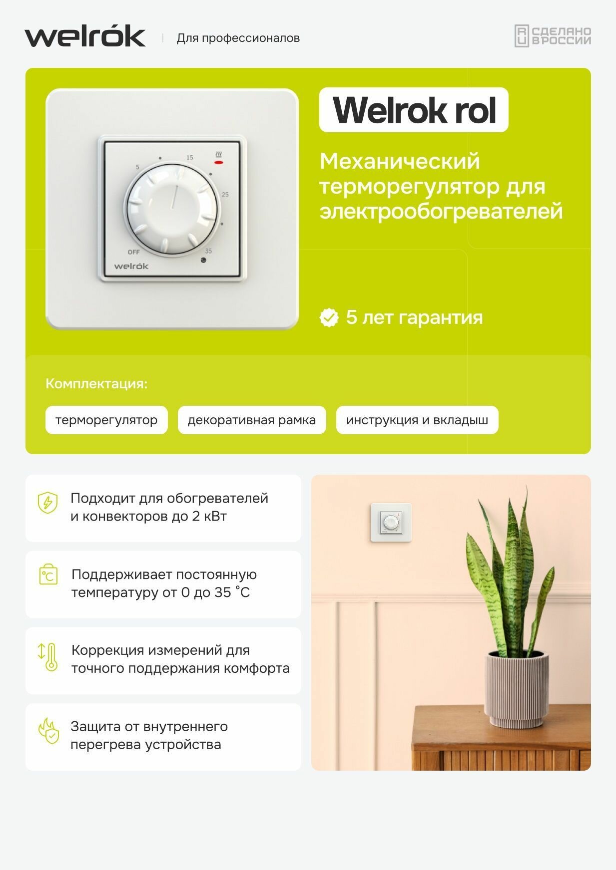 Терморегулятор WELROK ROL(16 А, 3 кВт) белый