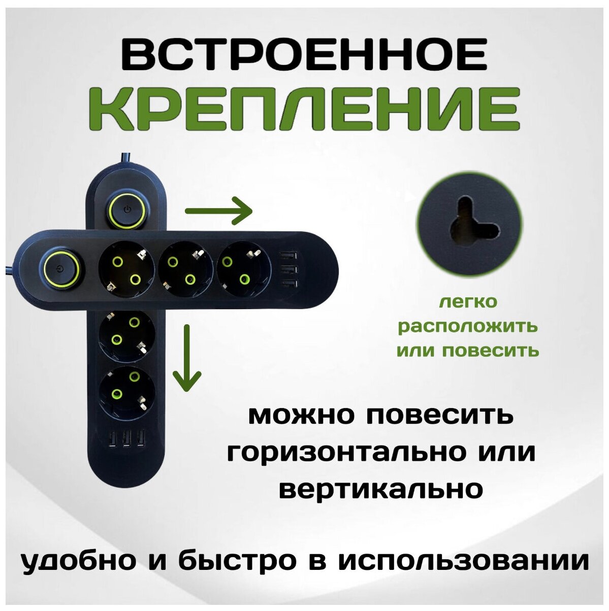 | Дополнительная информация | • Предусмотрена возможность крепления на стену • Длина провода 2 метра • Мощность 2500Вт • Макс имальный допустимый ток 10А • Корпус из огнестойкого поликарбоната • Подсветка USB портов • Выключатель питания • Заземление Входное напряжение 220В Макс. ток 10А Номинальный ток 10А |