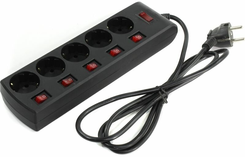 | Плюсы: | Прочный корпус, выключатель на каждую розетку, толстый шнур |