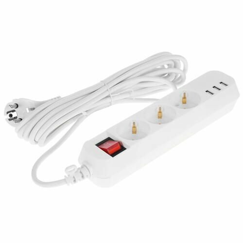 ЭРА Б0052902 Удлинитель электрический U-3es-5m-USB c заземлением с выключателем 3 розетки + 3xUSBA 5 . интересное: