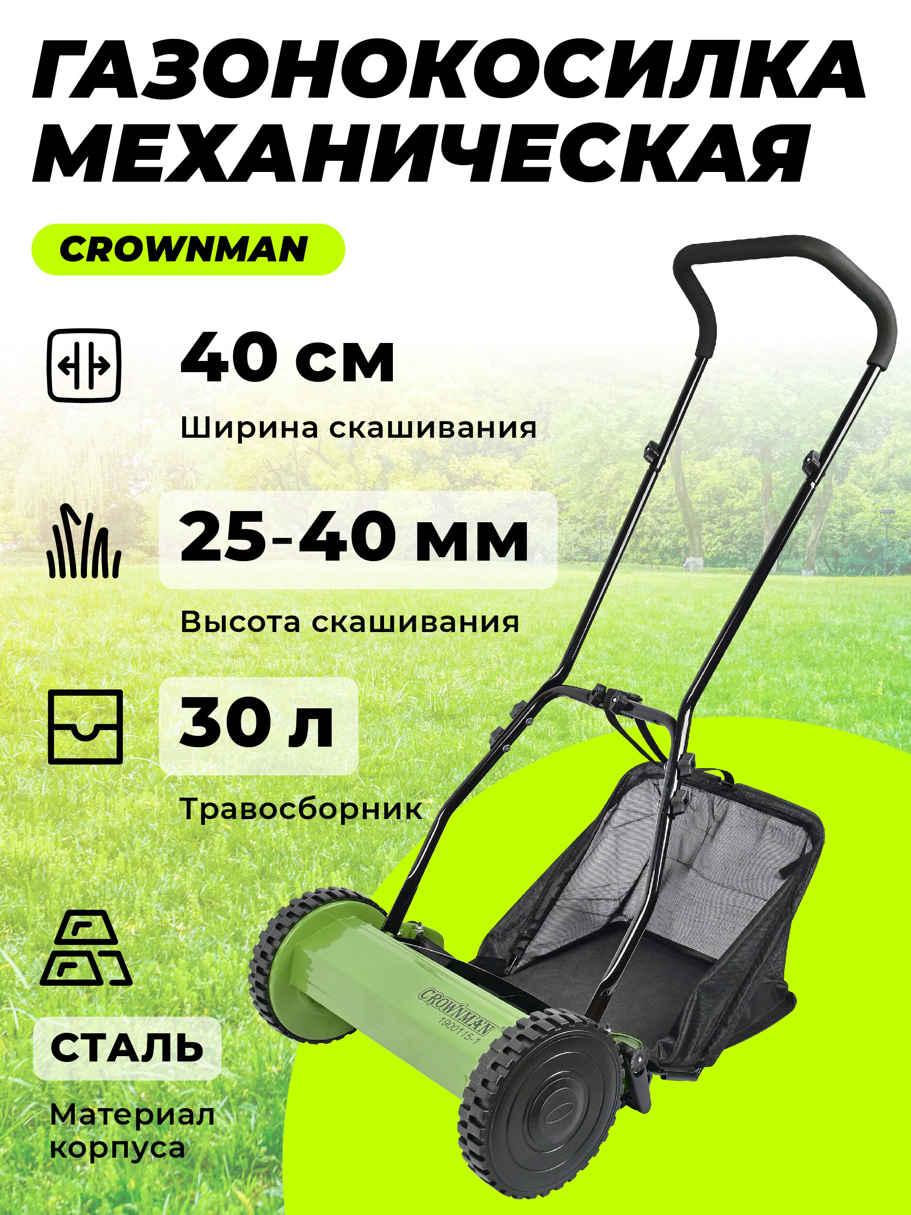 Газонокосилка механическая с травосборником CROWNMAN 1900115-1/Газонокосилка ручная для травы/Садовый инструмент для дачи интересное: