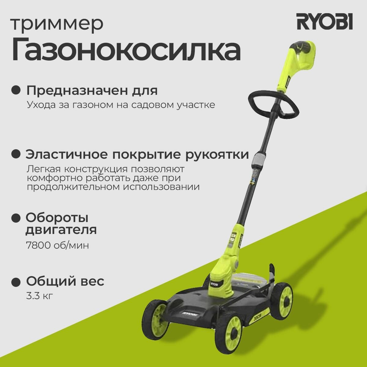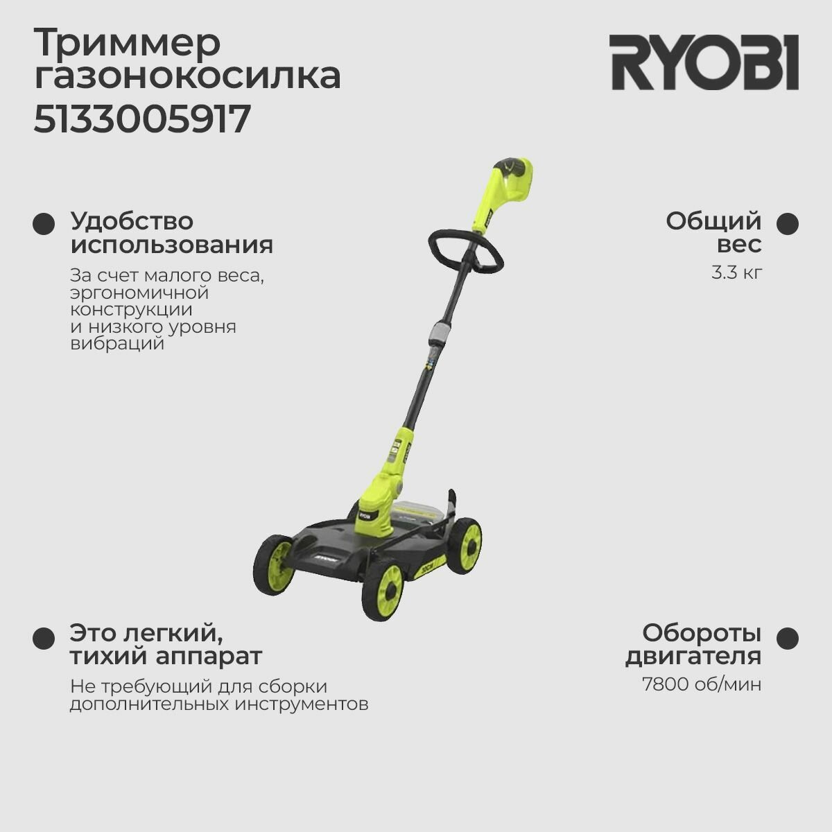 Триммер-газонокосилка аккумуляторный Ryobi RY18LMC30A-0 ONE+ интересное:
