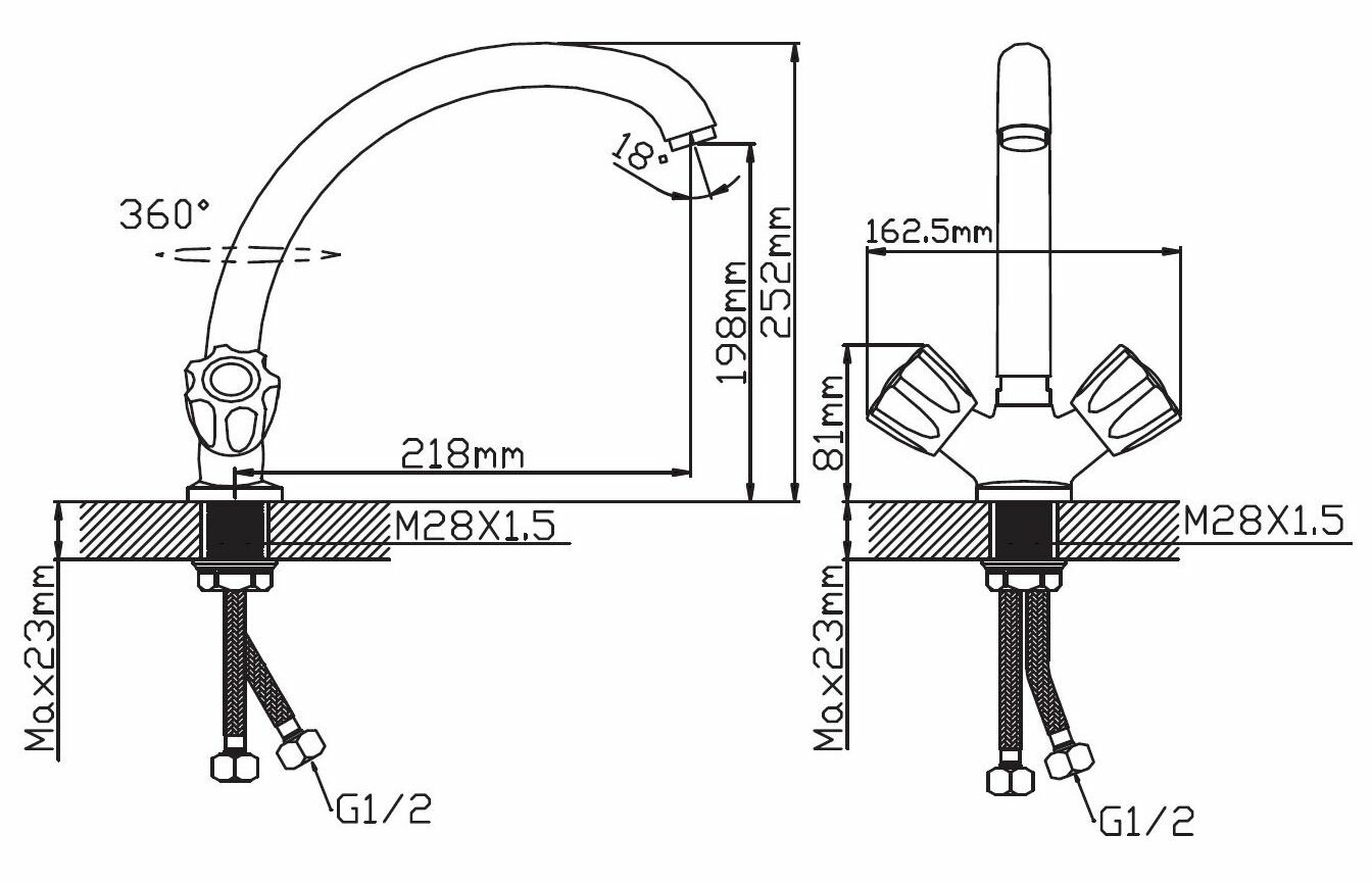P42319 Смеситель для кухни с высоким изливом (крепление гайка) Potato
