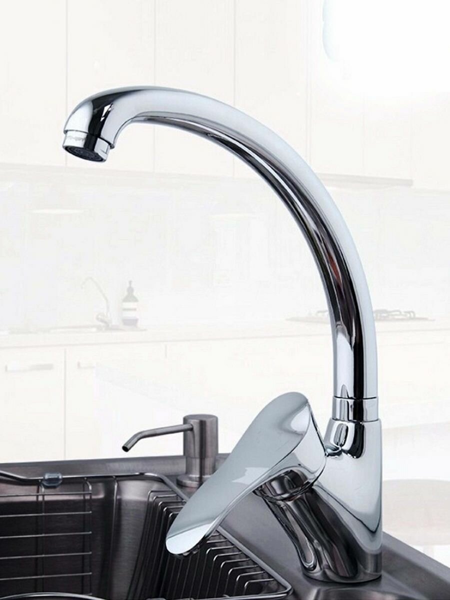 Смеситель для кухни Potato P41214 одноручковый с высоким поворотным изливом, покрытие хром, картридж 35 мм, крепление шпильки