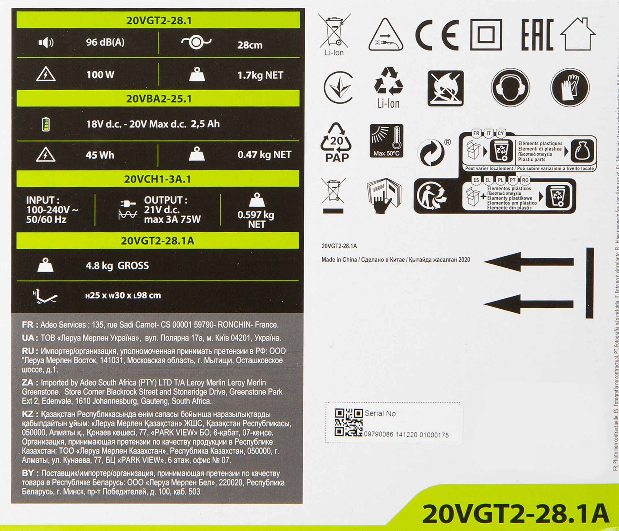 | Подробная комплектация | Триммер аккумуляторный, зарядка и аккумулятор в комплекте |
