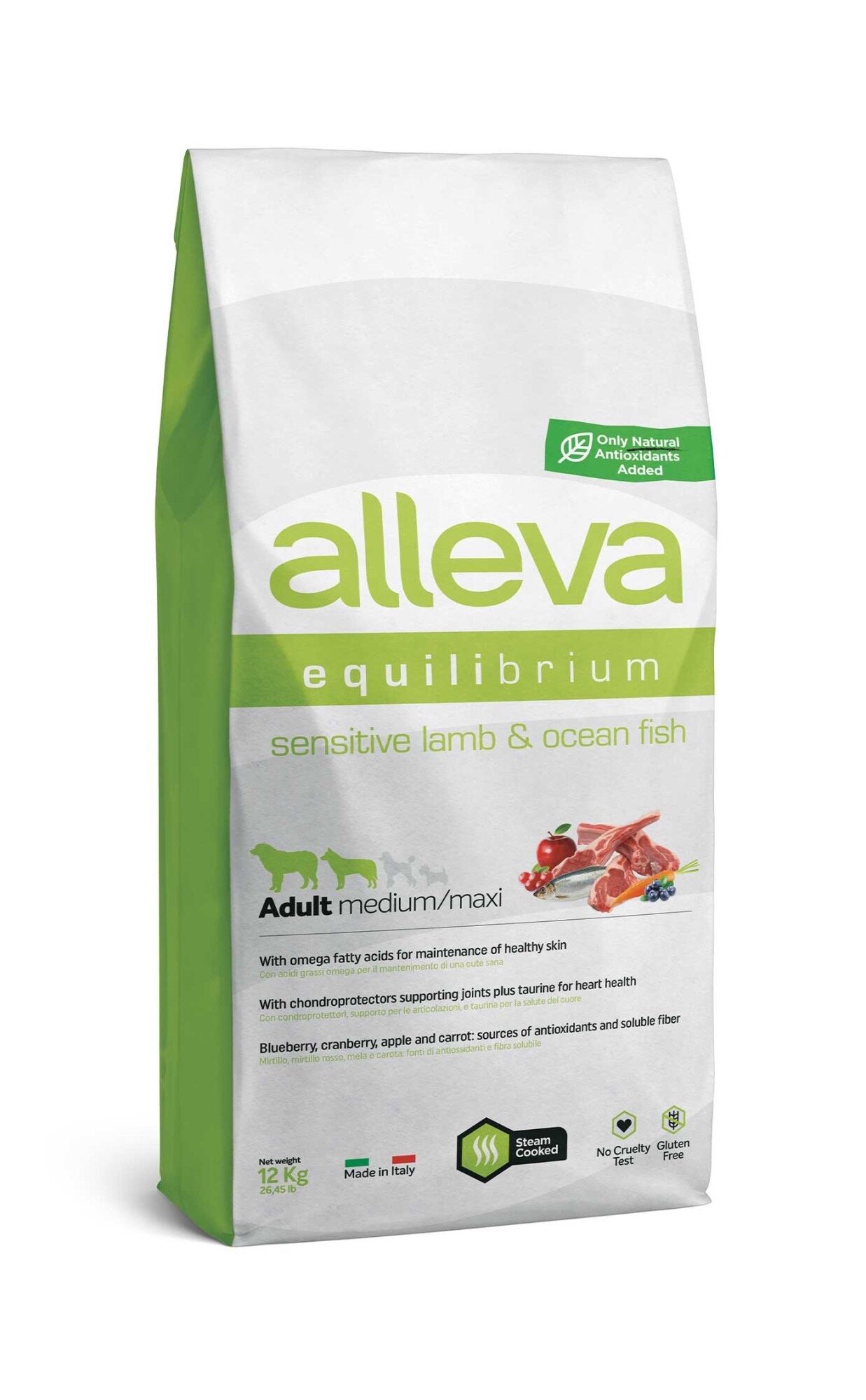 ALLEVA EQUILIBRIUM DOG для собак Sensitive Lamb & Ocean Fish Medium/Maxi / взрослых с ягненком и океанической рыбой 12кг