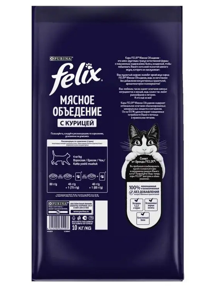 Felix Мясное объедение 10 кг сухой корм для взрослых кошек, с курицей