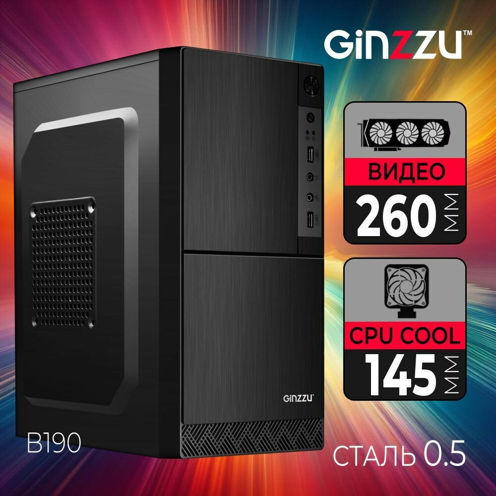 Корпус Ginzzu B190 2*USB 2.0,AU (450w 12 см) B190 450w 12cm