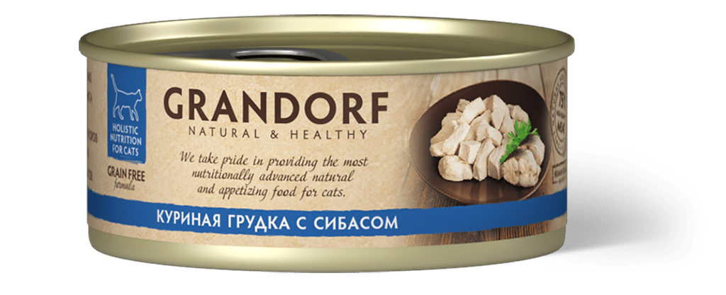 Влажный корм Grandorf консервы для кошек, Куриная грудка с сибасом, 70 г. х 6 шт