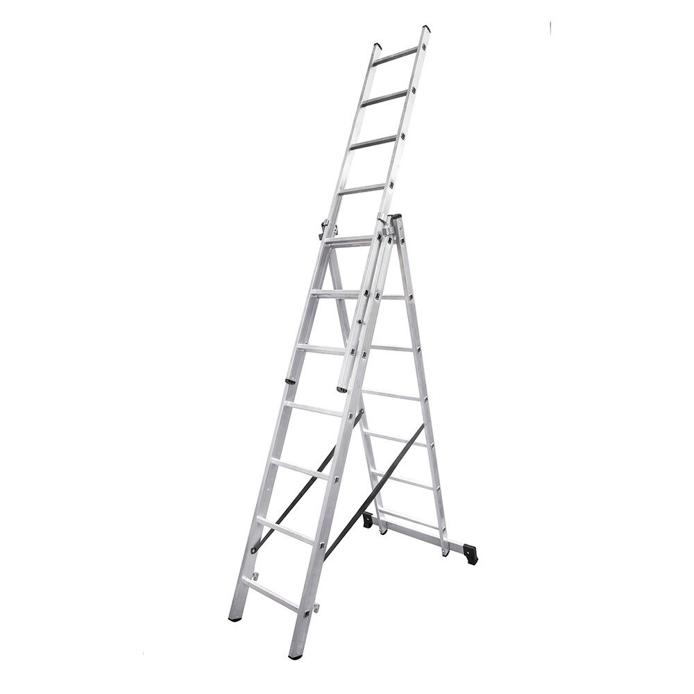 Купить Лестница алюминиевая трансформер трехсекционная 7 ступеней Hesler бытовая