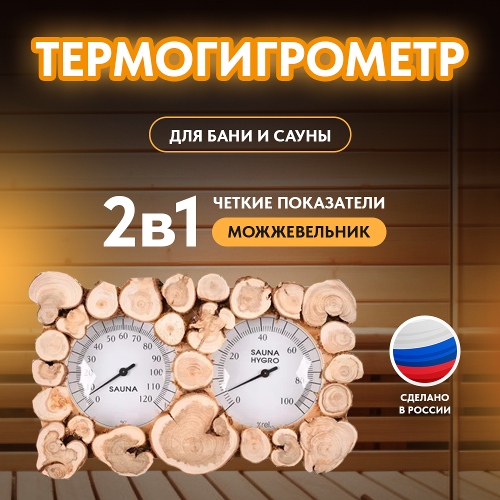 Термогигрометр для бани и сауны, контрастная древесина, от 0°С до +120°С