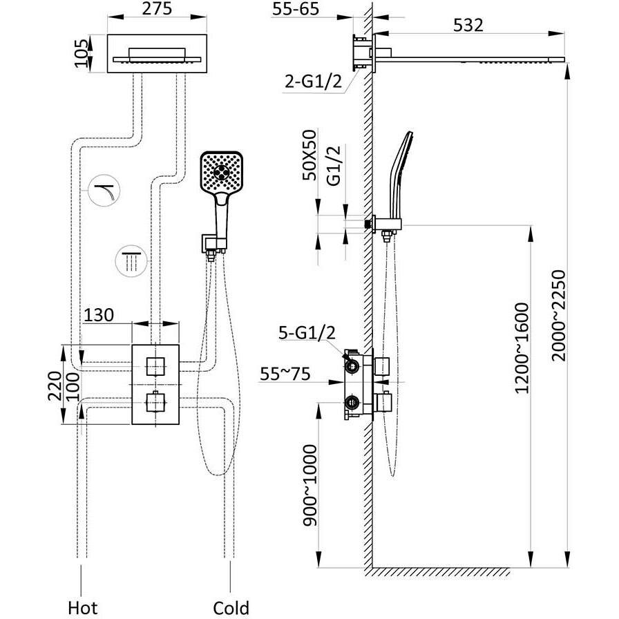 | Комплектация | верхний душ / лейка / Смеситель / держатель для лейки / кронштейн для верхнего душа / переключатель потоков / скрытая монтажная часть / Шланговое подключение |