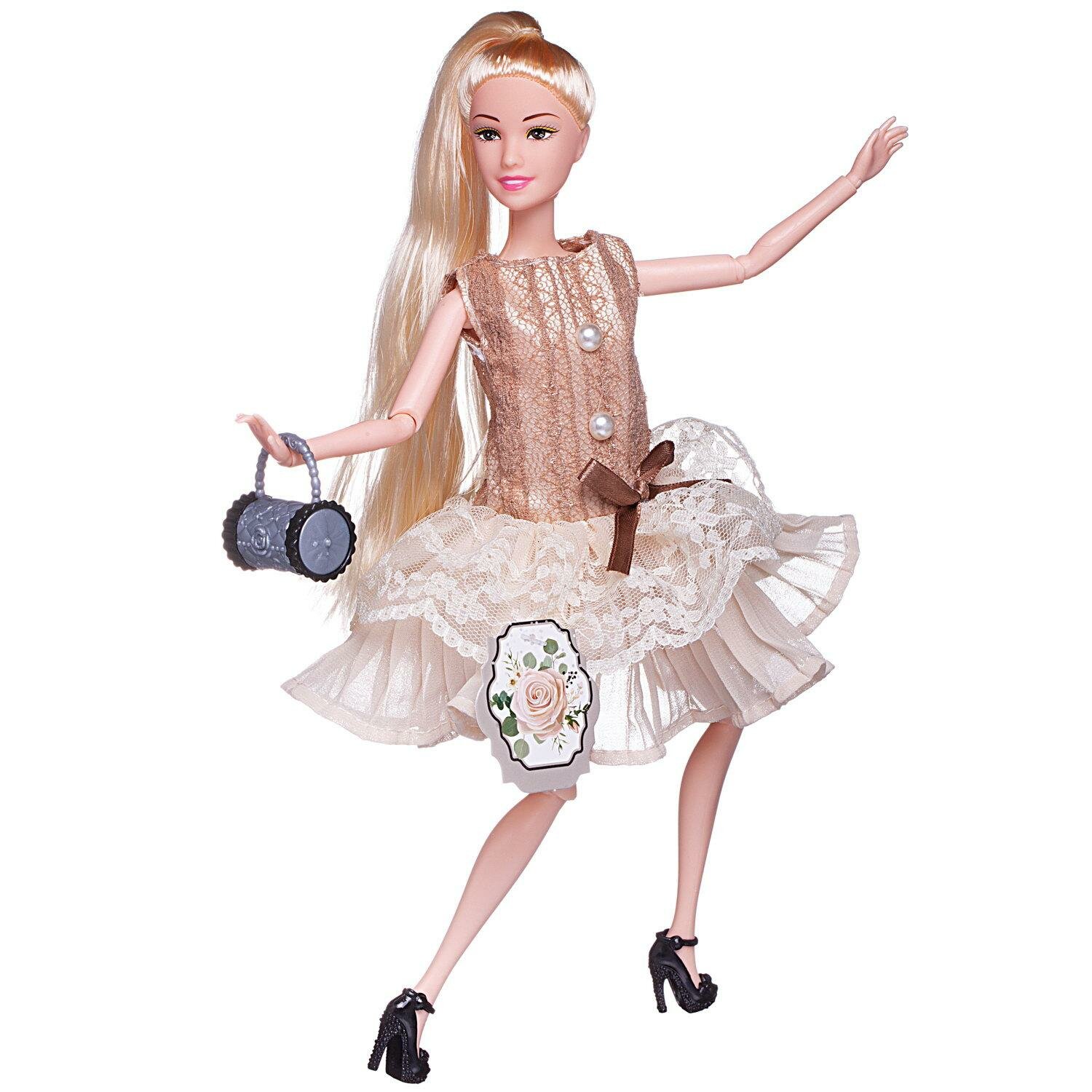 СохранитьКукла ABtoys Современный шик в платье без рукавов с плиссированной юбкой, коричневая сумка, светлые интересное: