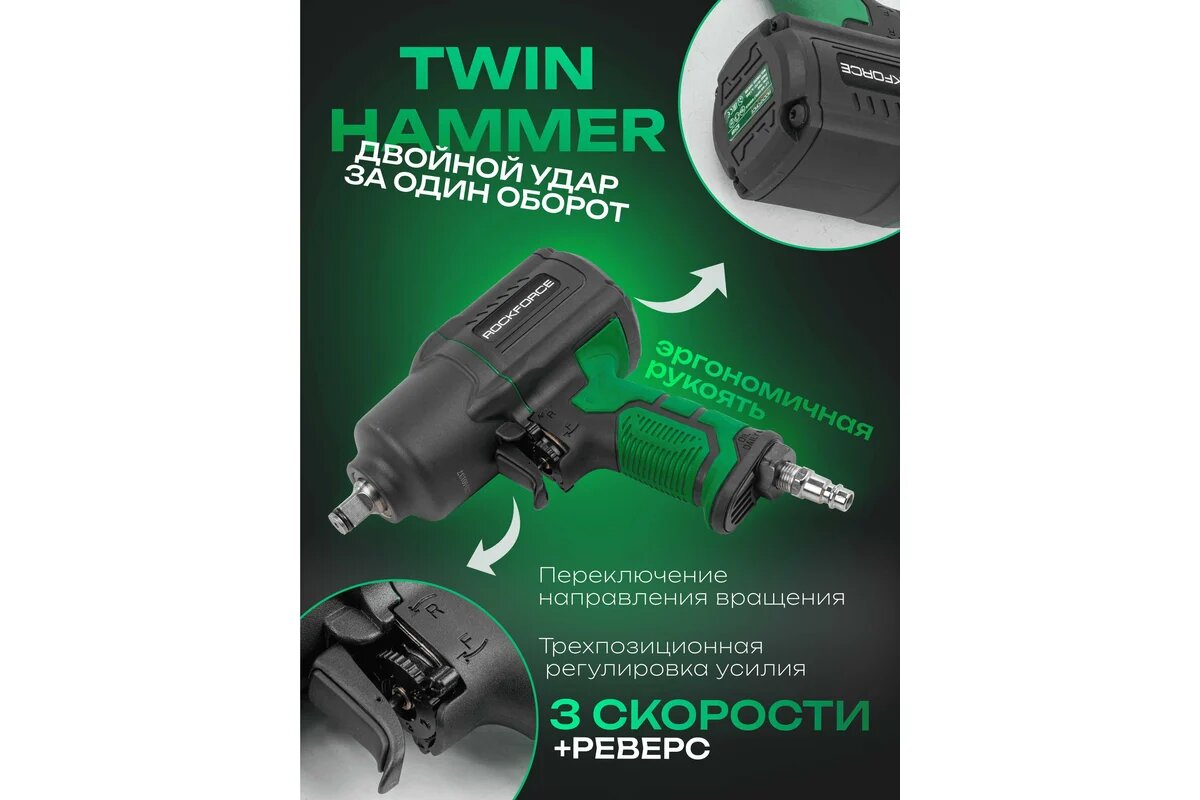 Гайковерт пневматический 1/2" 1450Нм 7000об/мин. 198л/мин. Twin Hammer ROCKFORCE