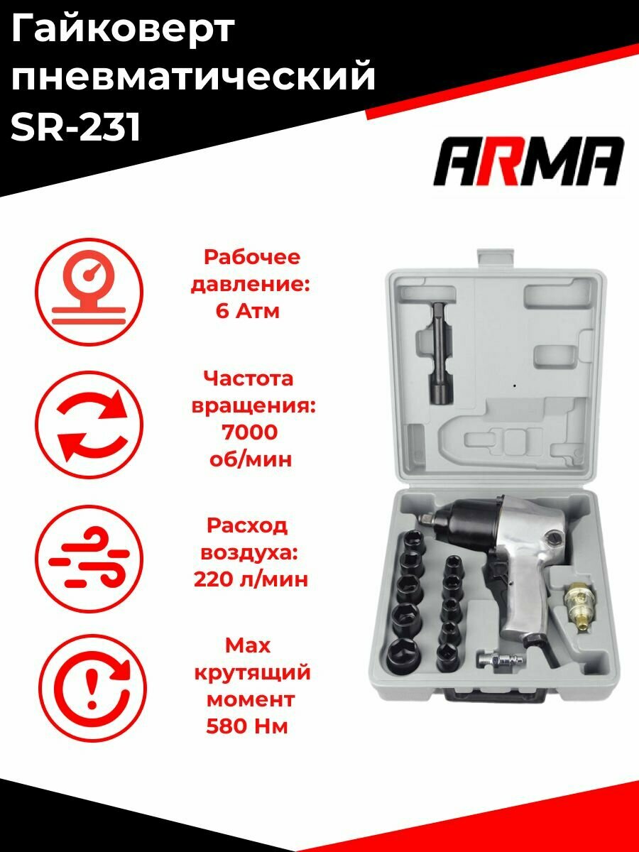 Купить Гайковерт пневматический SR-231 ARMA с набором головок