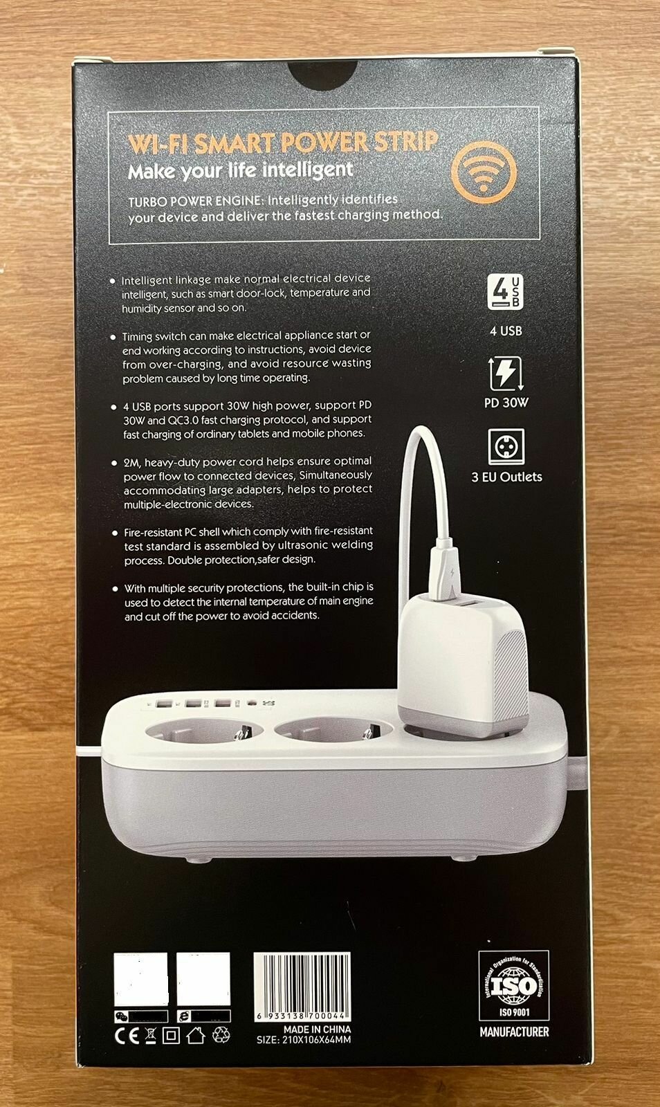 Сетевой фильтр LDNIO SEW 3452 WIFI , Управление через приложение, 3 евро-розетки, 3x USB + 1x Type-C, QC-3.0, 30W, 2.0M