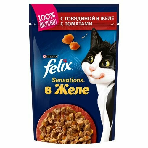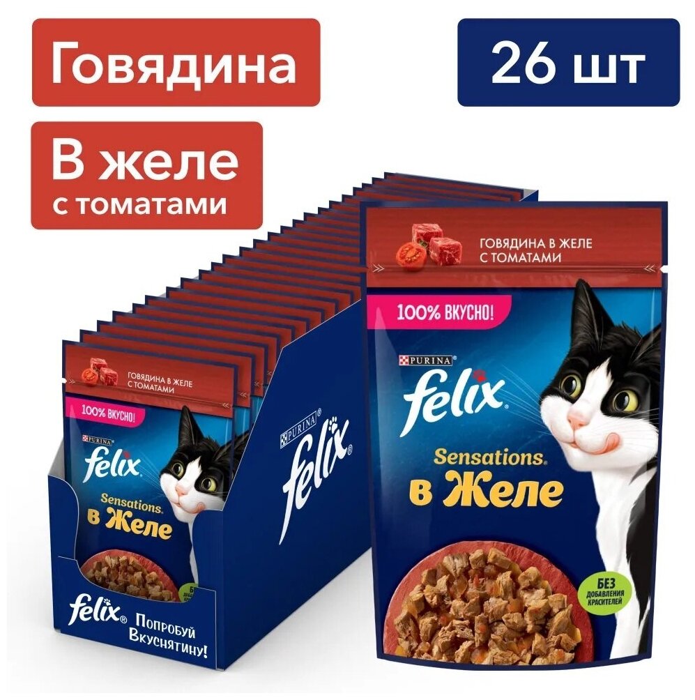 Felix Паучи Sensations кусочки в желе для кошек с говядиной и томатами (12232833123189651244963712493529) | Sensations 0,085 кг 24142 (26 шт)