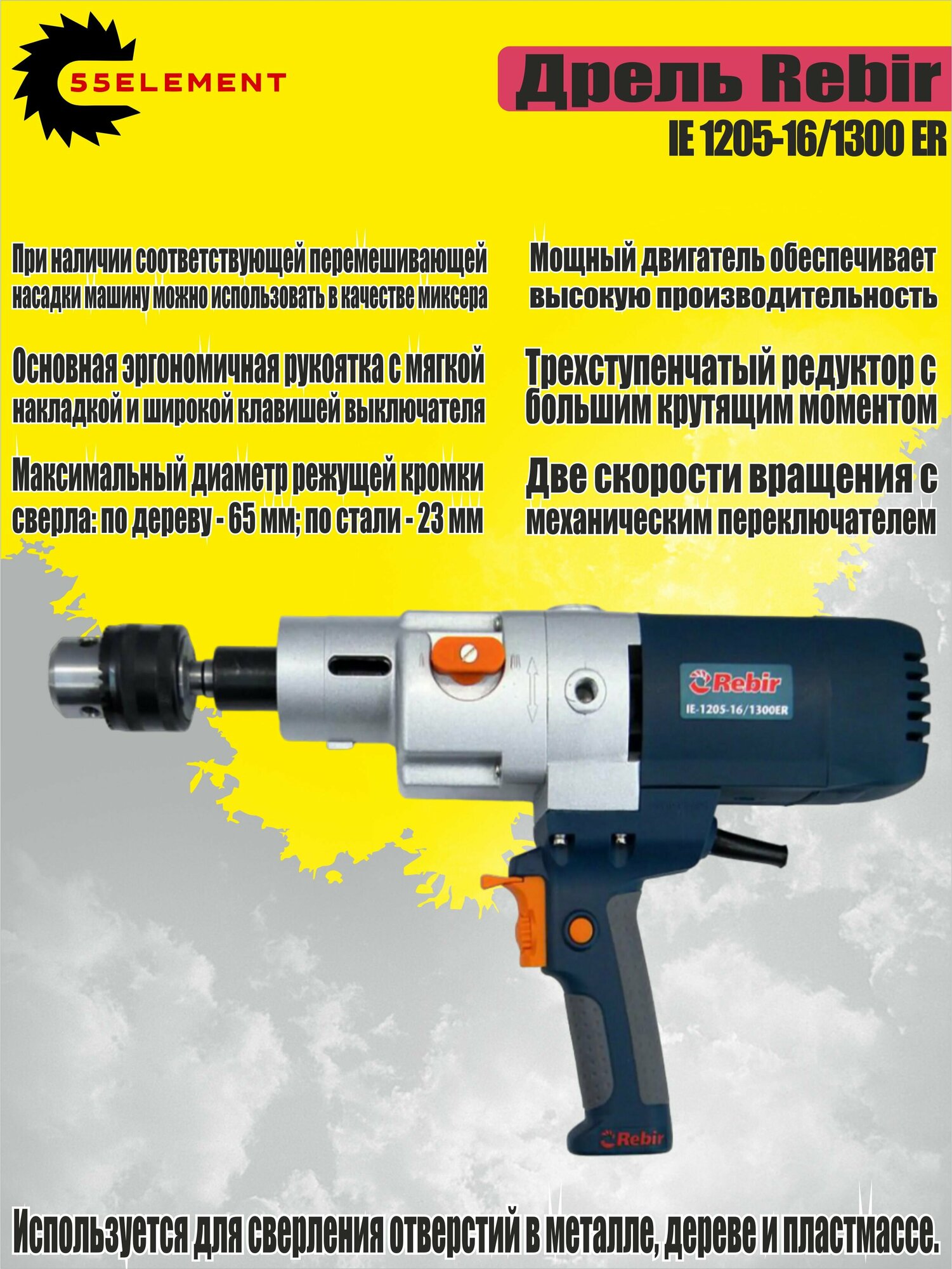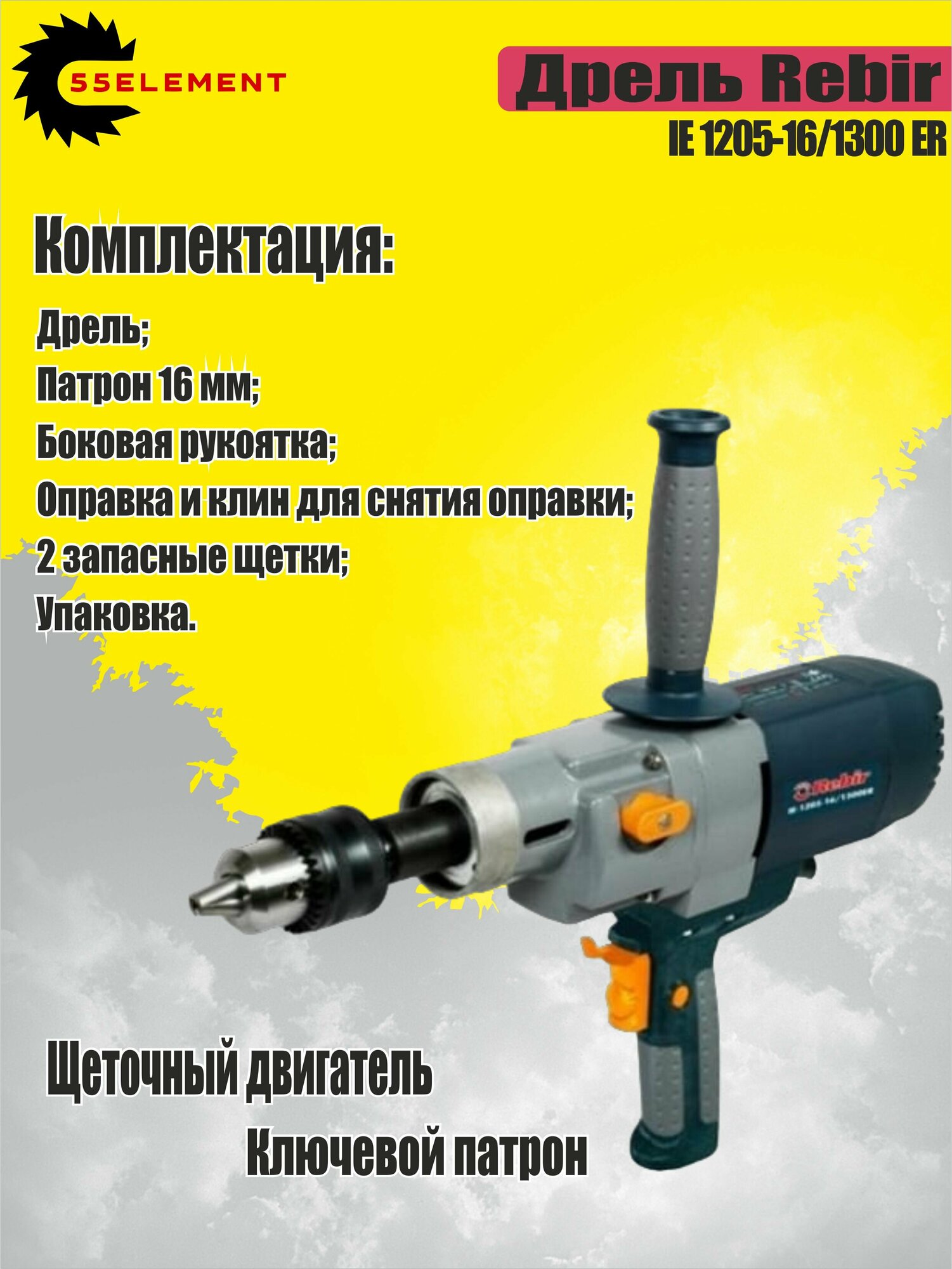 Дрель Rebir IE 1205 -16/1300 ER + поворотная ручка