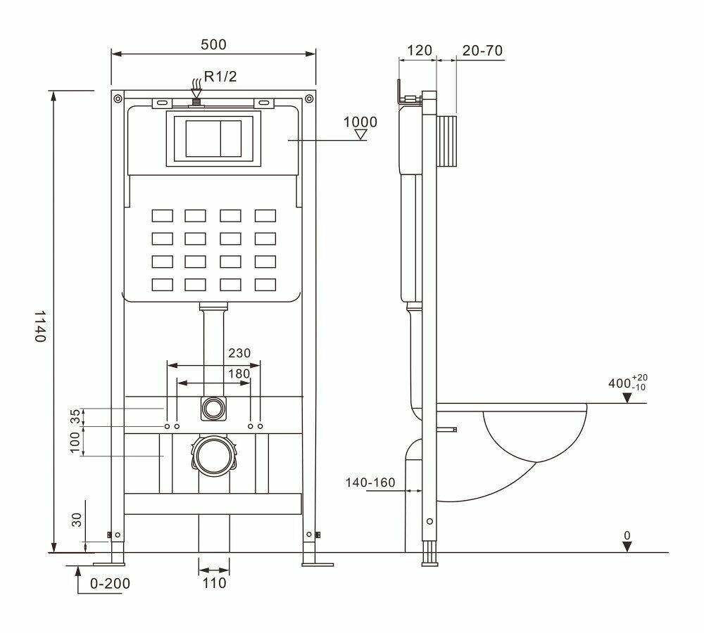 Vincea Инсталляция для унитаза Vincea VIS-601, 500x1112
