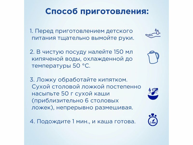 Тк аллергии не вызвало Легкорастворимая без комочков Ароматная и вкусная ребёнок есть с удовольствием |