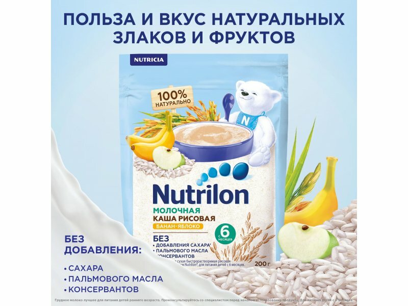 Nutrilon Молочная каша рисовая банан-яблоко 200 гр. интересное: