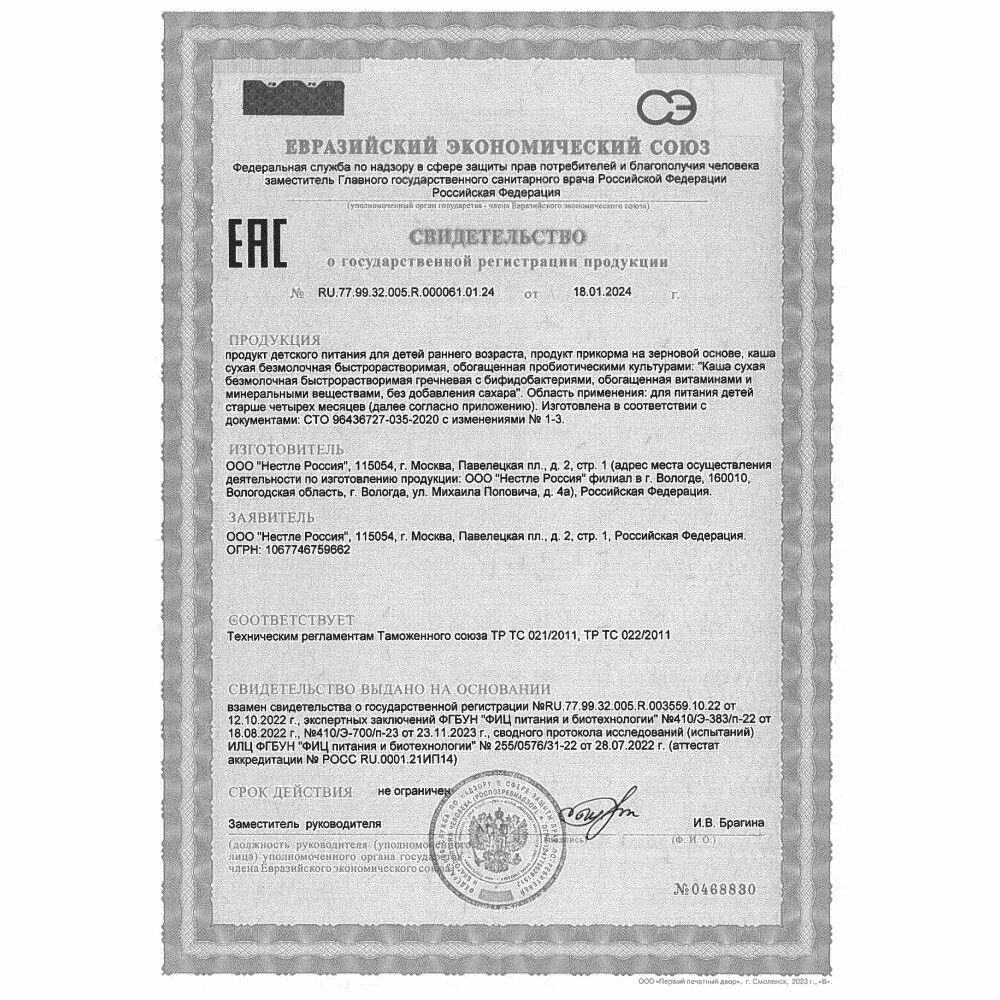 | Состав | гречневая мука, молоко сухое обезжиренное, пальмовый олеин, мальтодекстрин, сахар, витамины и минеральные вещества, бифидобактерии не менее 1х10⁶ КОЕ/г |