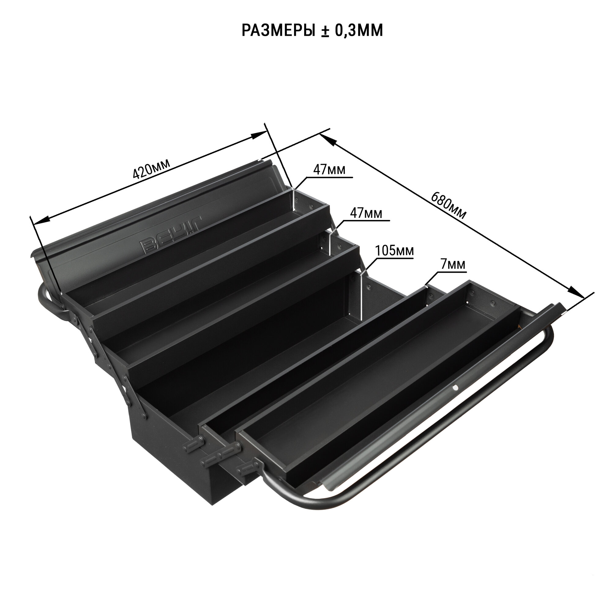 Ящик инструментальный стальной ГОСТ Р 58864 – 58865 -2020. 450х200х200