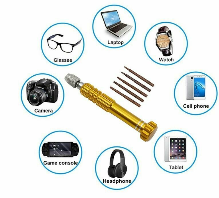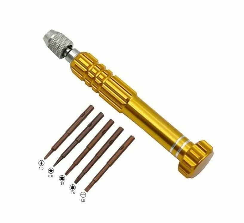 | Дополнительная информация | Биты набора выполнены из хромованадиевой стали. Магнитный держатель обеспечивает быструю замену и надежную фиксацию насадок. Для удобства хранения и транспортировки все биты можно хранить в корпусе отвертки, содержит 6 предметов: ОтверткаTORX (шестигранная звезда): T2PHILLIPS (крестовая): PH1.2, PH1.5 mmPentalobe (шлиц для продукции Apple): 0.8Tri-Wing (трехлистник): Y0.6 для iPhone7, 7 plus, Apple WatchПодходит для ремонта большинства видов и моделей популярной портативной техники: смартфоны, часы, планшетные ПК, игровые приставки, электронные сигареты, ремонта iPhone (iPhone 4, 4s, 5, 5S, 5C, SE, 6, 6 plus, 7, 8, X, XS, XR, 11, 12, 13), iPAD, iPod. А также ремонта Apple Watch. |