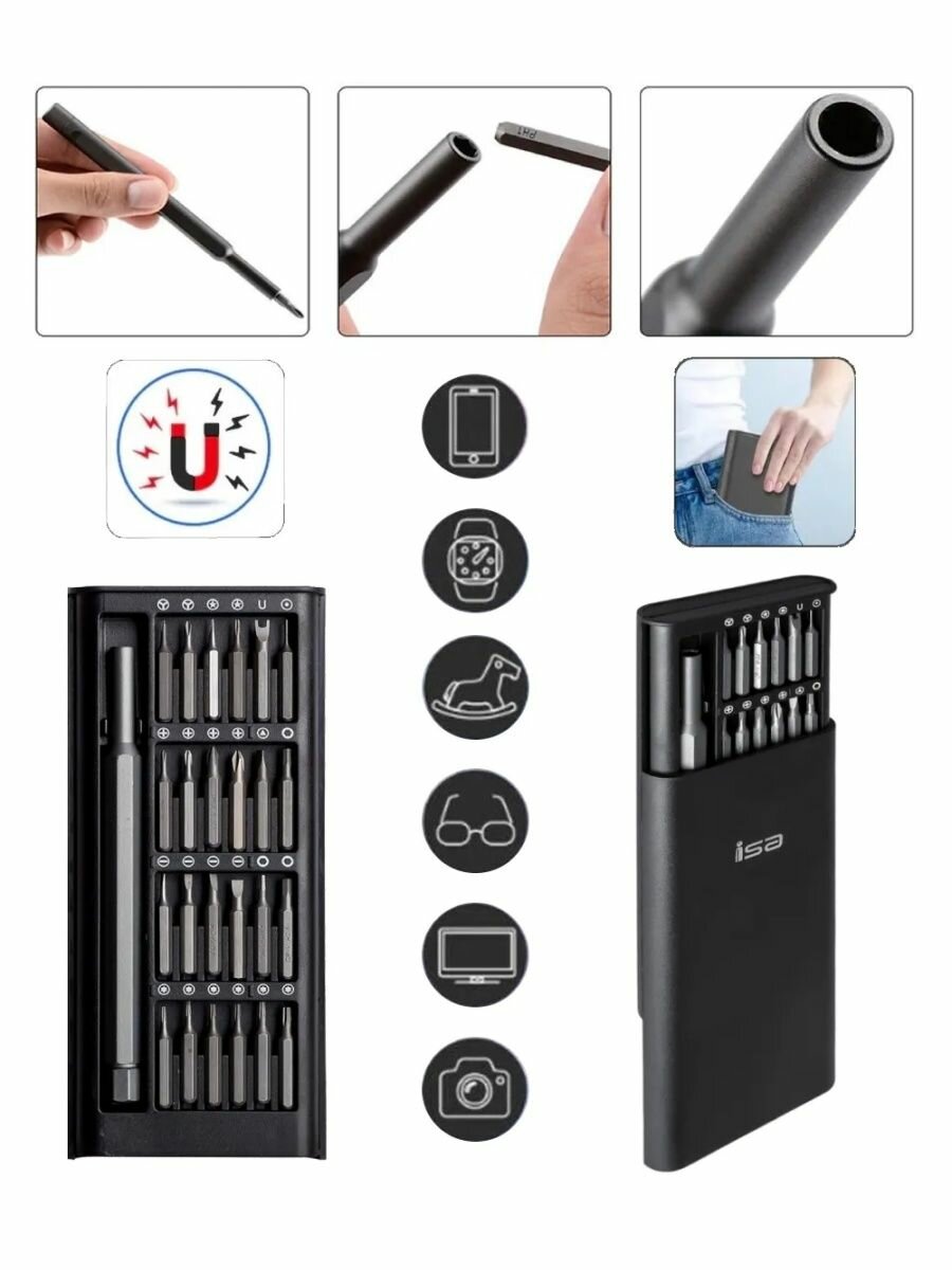 Набор отверток для точных работ 24 в 1 в пластиковом кейсе - ISA Magnetic Metal Screwdriver SET интересное: