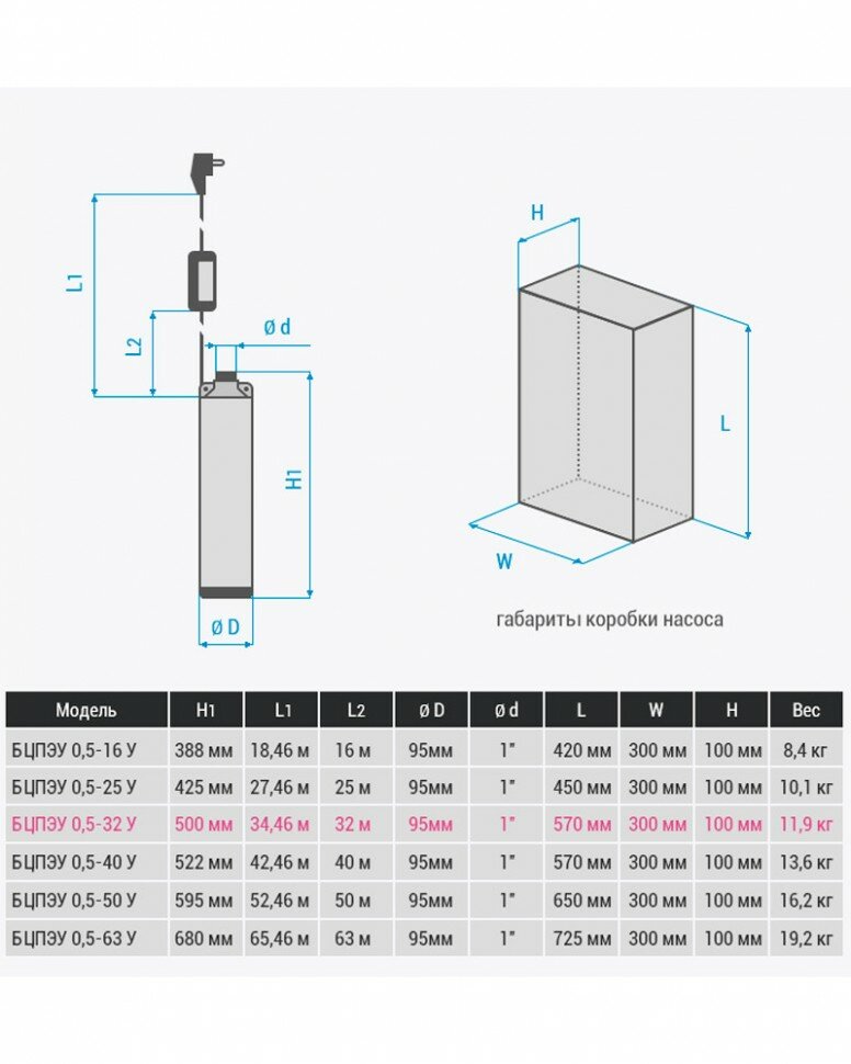 | Диаметр насоса | 95 мм |