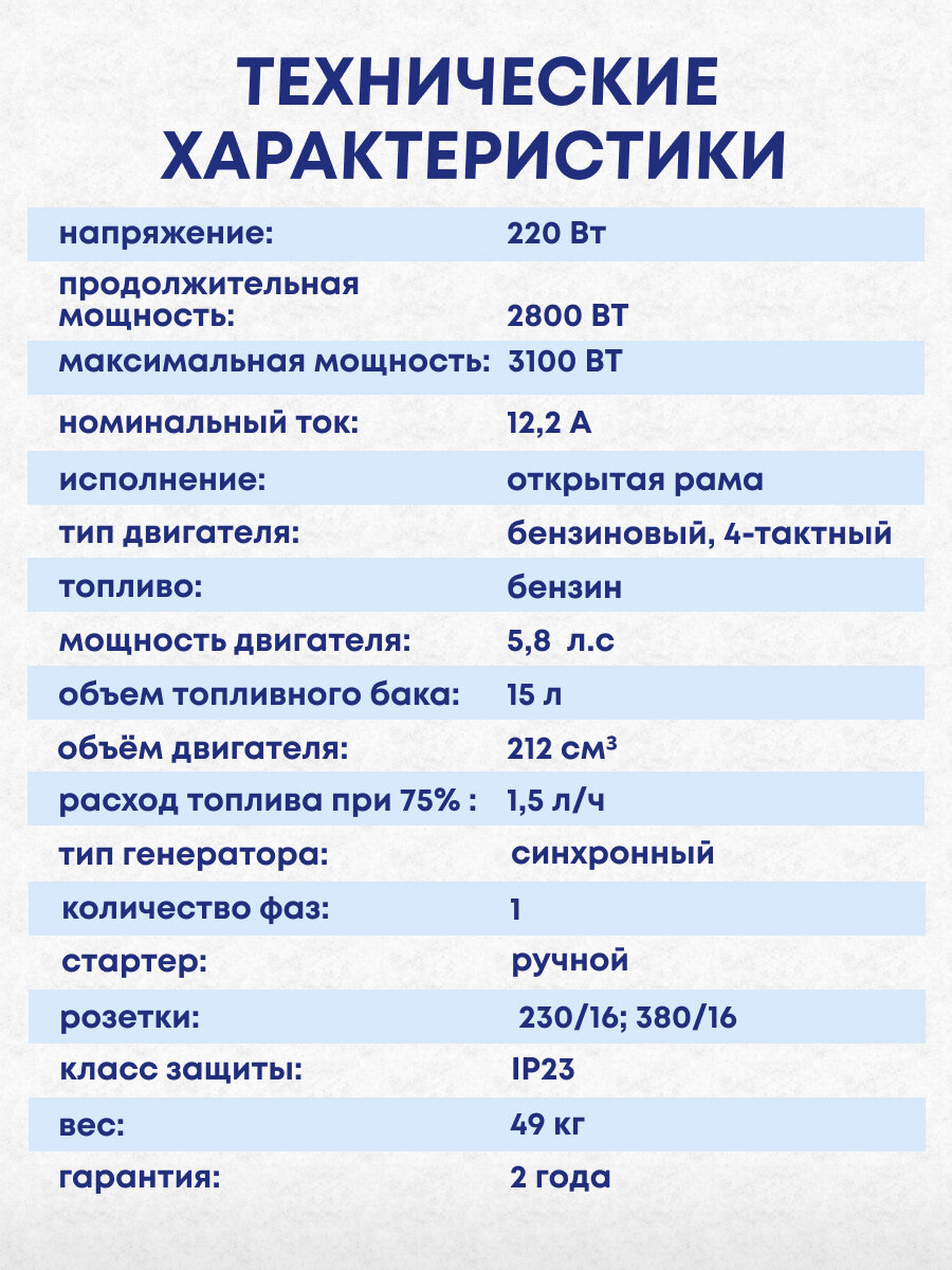 | Минусы: | Компрессор Ремеза 2.2кВт с пусковым током 30А не запустил, сам генератор чуть не заглох.. нет там заявленных 7кВт... |
