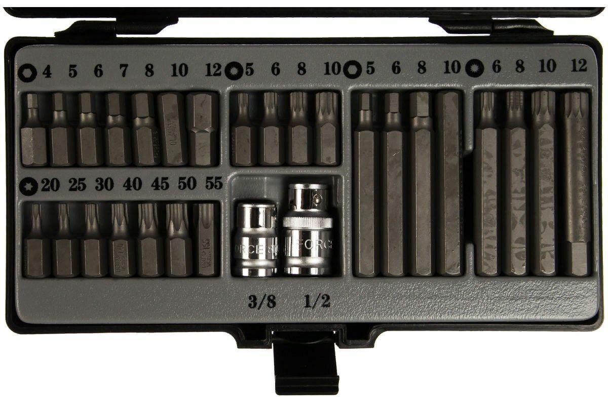 Набор бит 1/2 3/8 SPLINE, TORX, HEX T10-55H с держателем в кейсе 2 предмета FORCE FORCE 4283