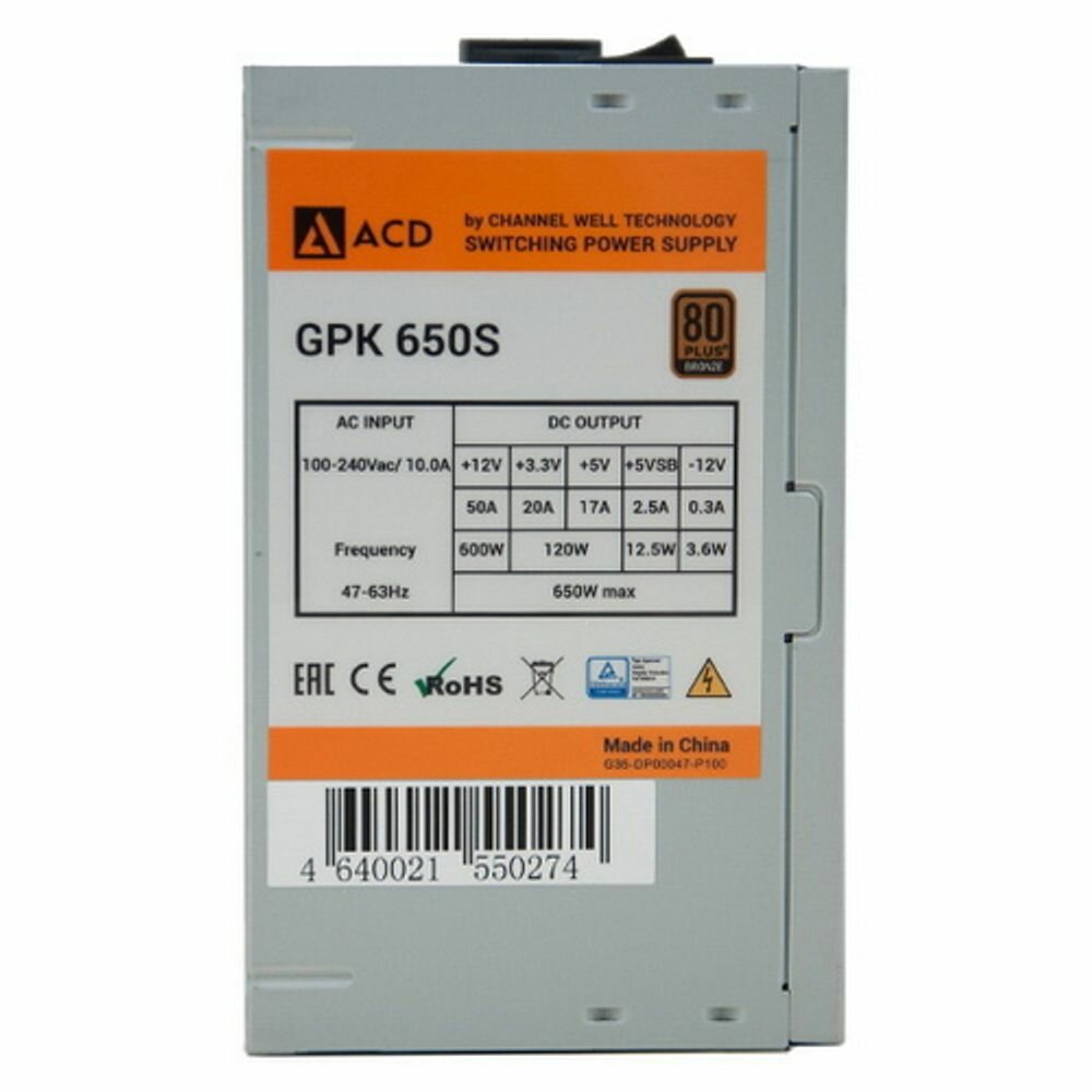 Блок питания ACD GPK650S 650W, 80+ Bronze (GPK-650S)